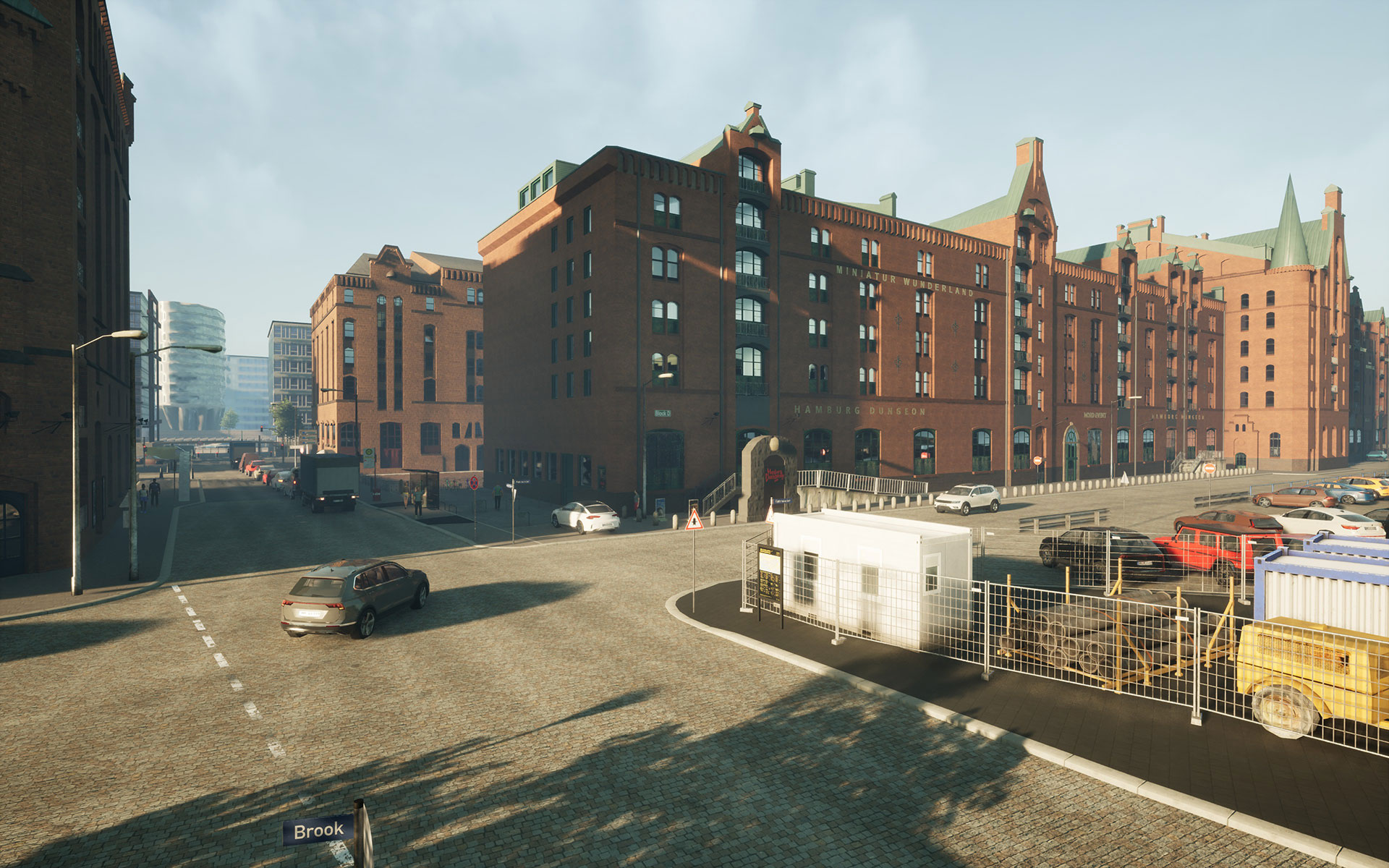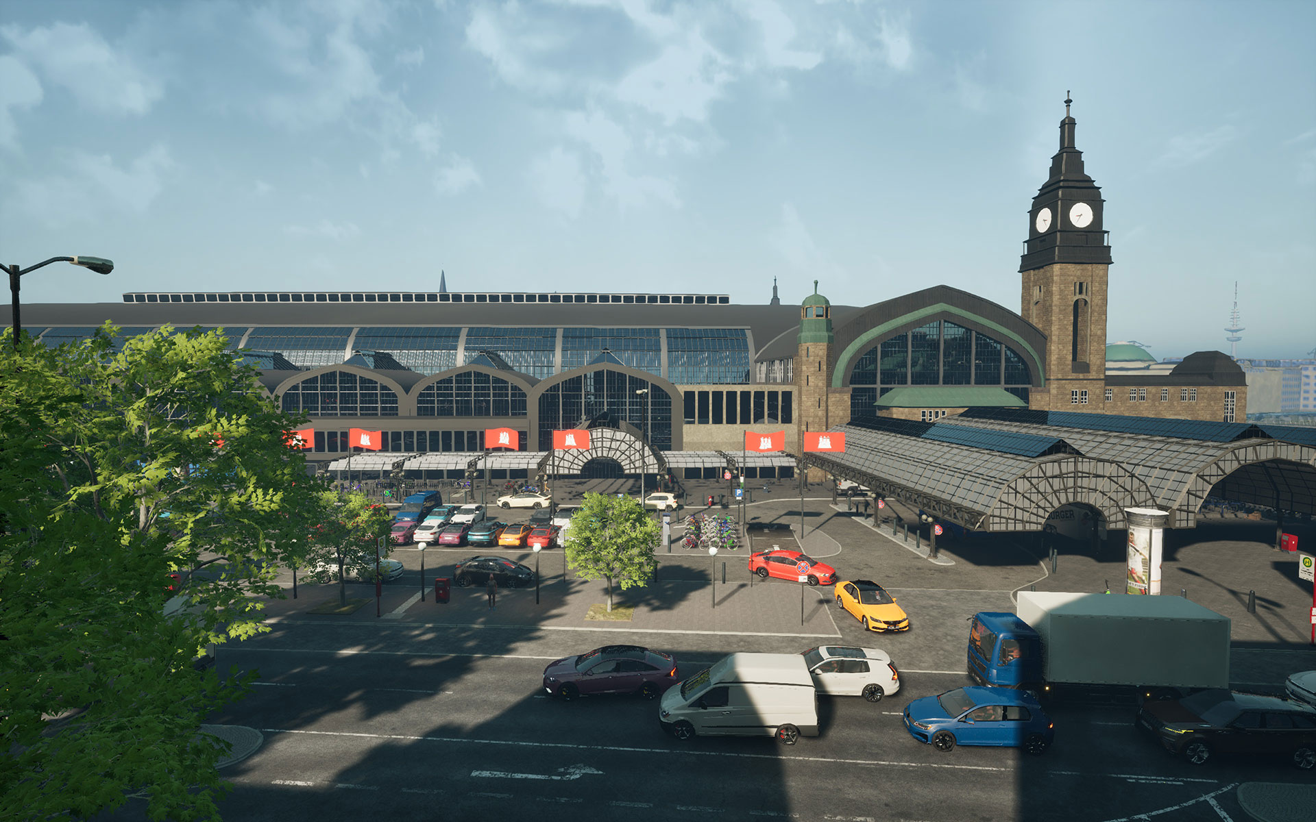 Über 250 detailverliebte 3D-Objekte wurden speziell für dieses Add-on gebaut, Speicherhäuser, moderne Büros, Brücken, Bahnhöfe. Auch aus der Ferne erkennst du berühmte Wahrzeichen: Fernsehturm, Spiegel-Gebäude, Elbphilharmonie und mehr.