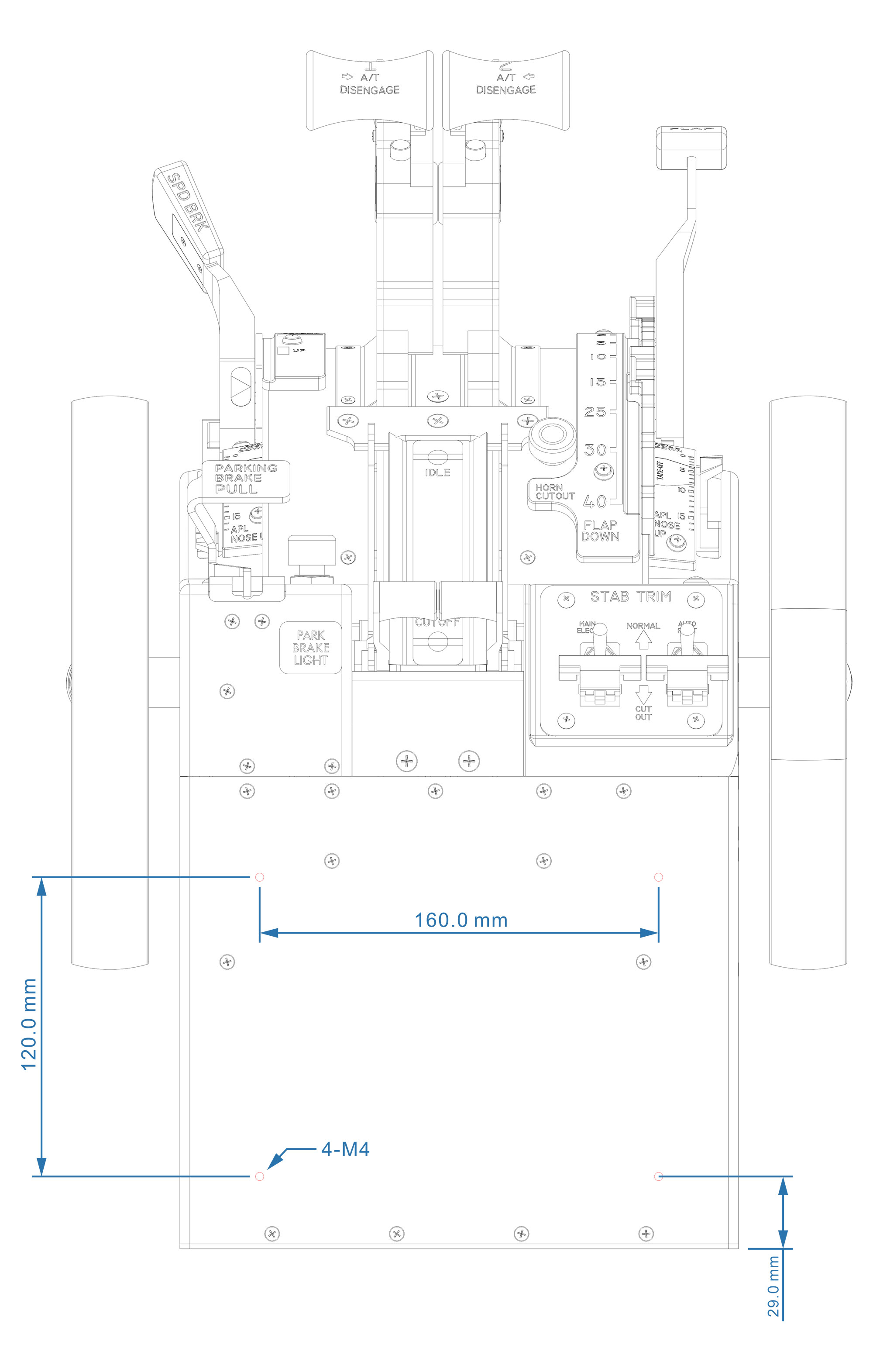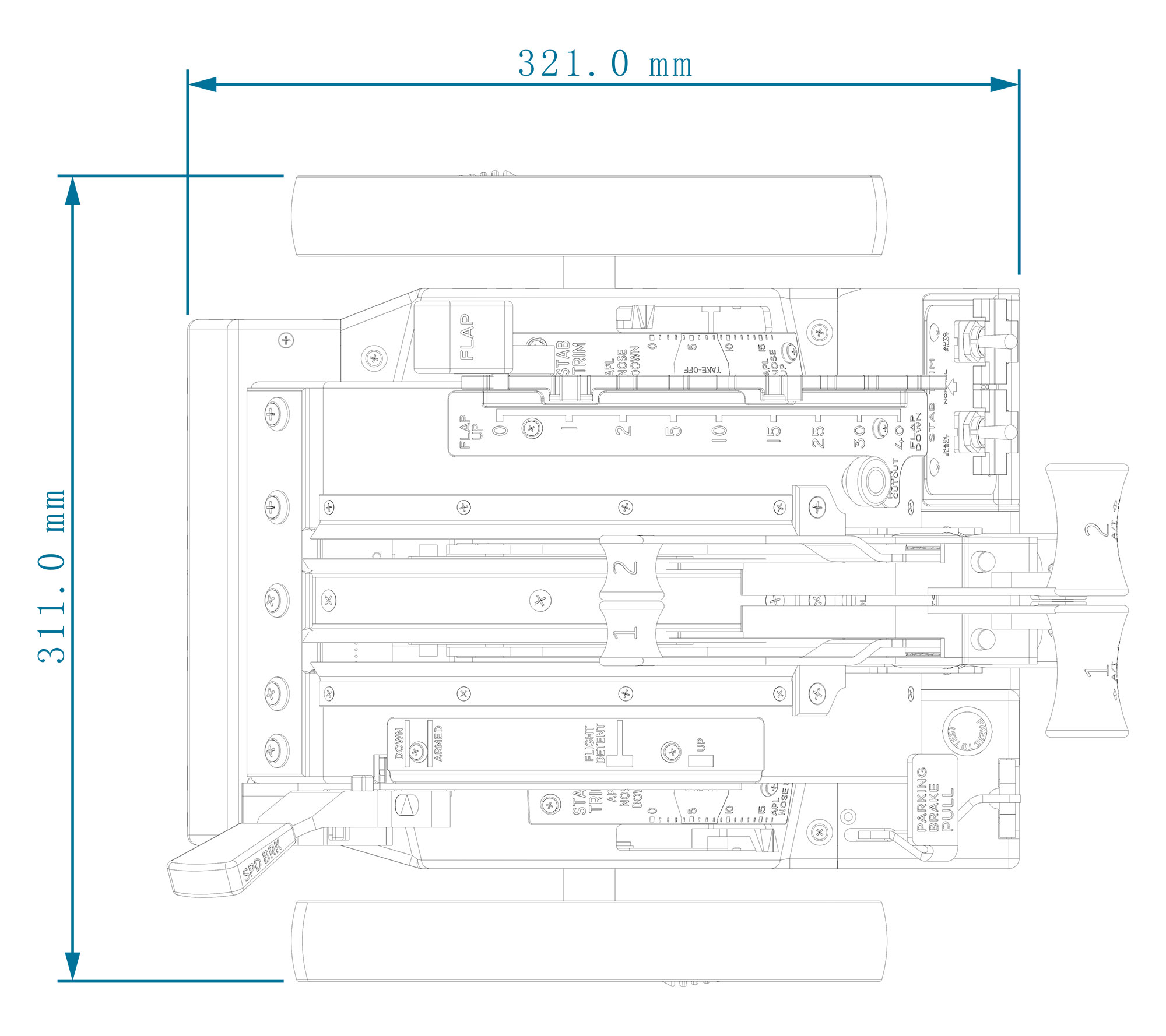 - 4 high-torque brushless motors and 5 stepper motors, enabling motorized operation of throttle levers, speed brakes and trim system