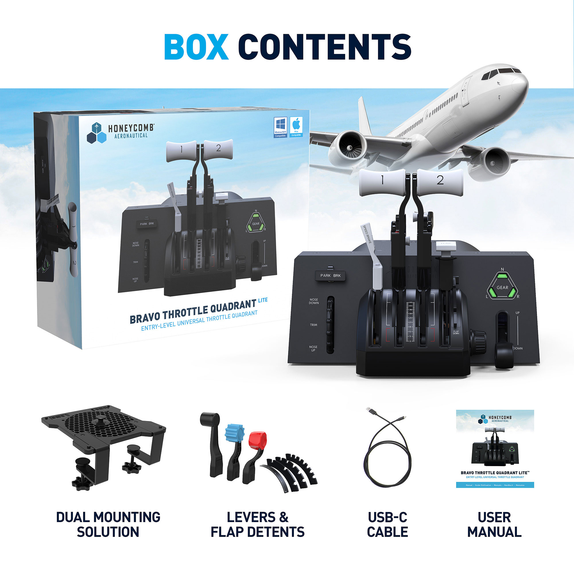Built with durable materials and precision mechanics, Bravo Lite delivers reliable performance flight after flight. Compatible with PC and Mac and optimised for Microsoft Flight Simulator, it is the ideal foundation for expanding any home cockpit setup.