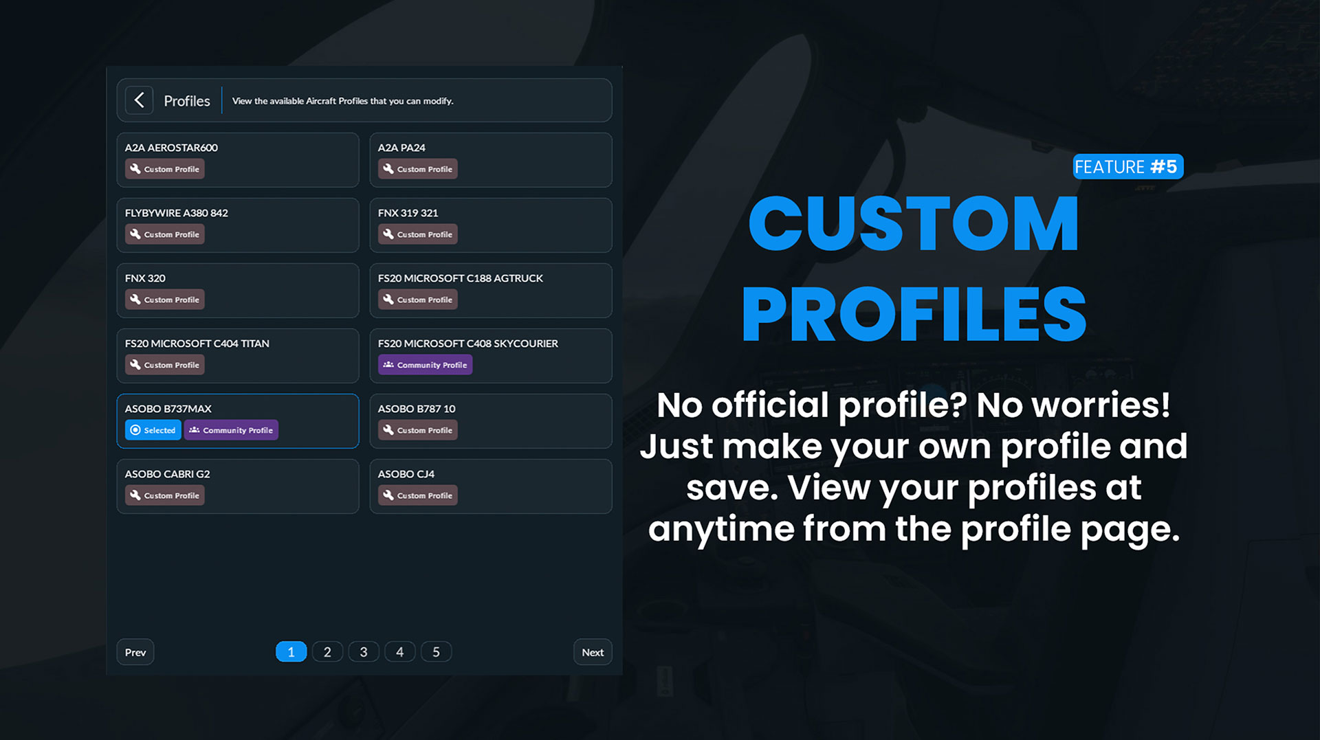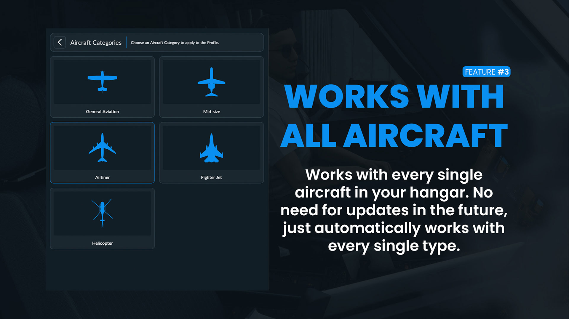 Works seamlessly with built-in aircraft, helicopters, jets, gliders, and all third-party add-ons. - Over 120 Official Profiles Included