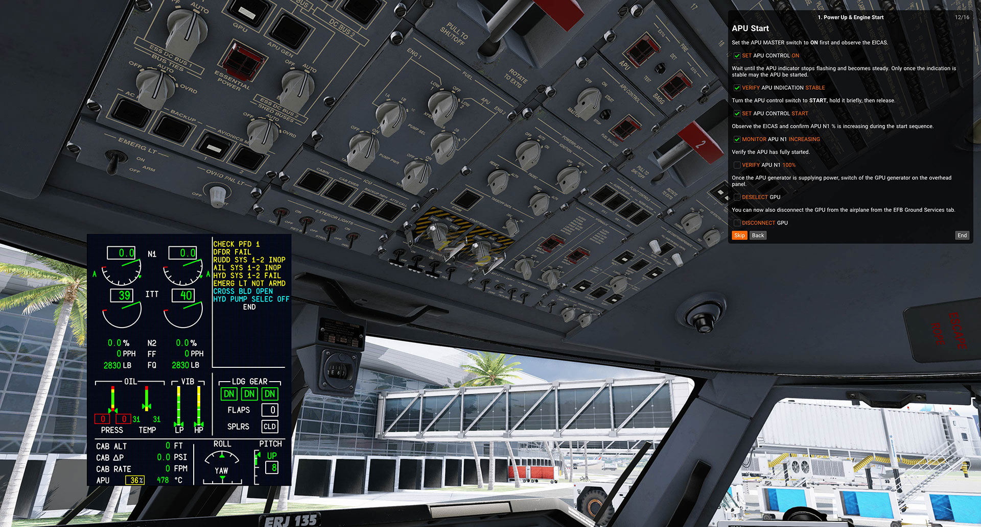 - Electrical, fuel, hydraulic, pneumatic, anti-ice, and APU systems, including realistic system tests