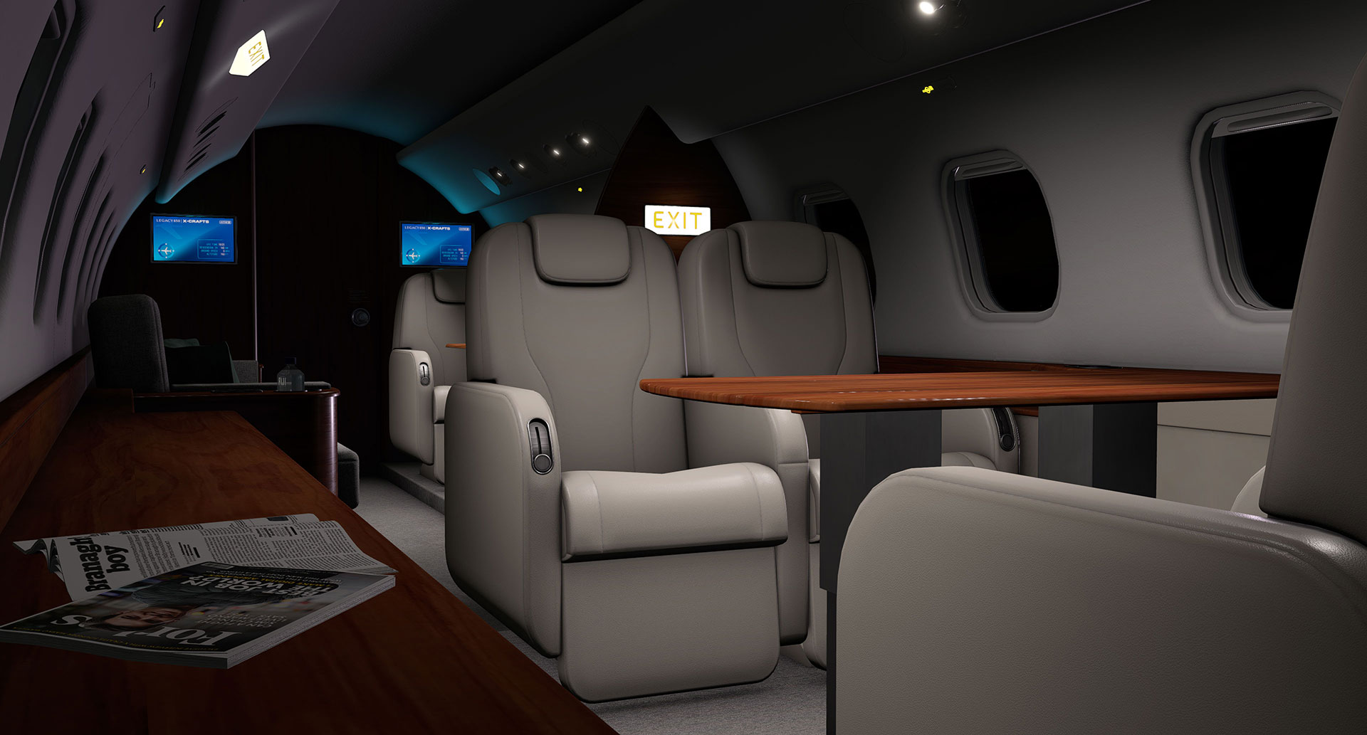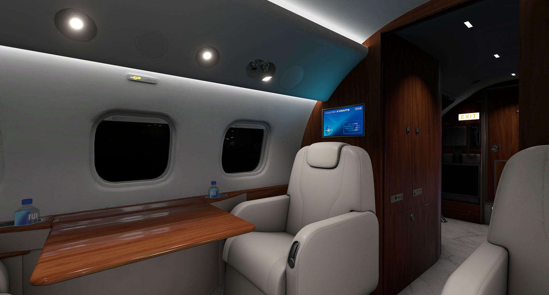 - Interactive blinds, tables, and doors with automatic stow logic for takeoff, landing or turbulence