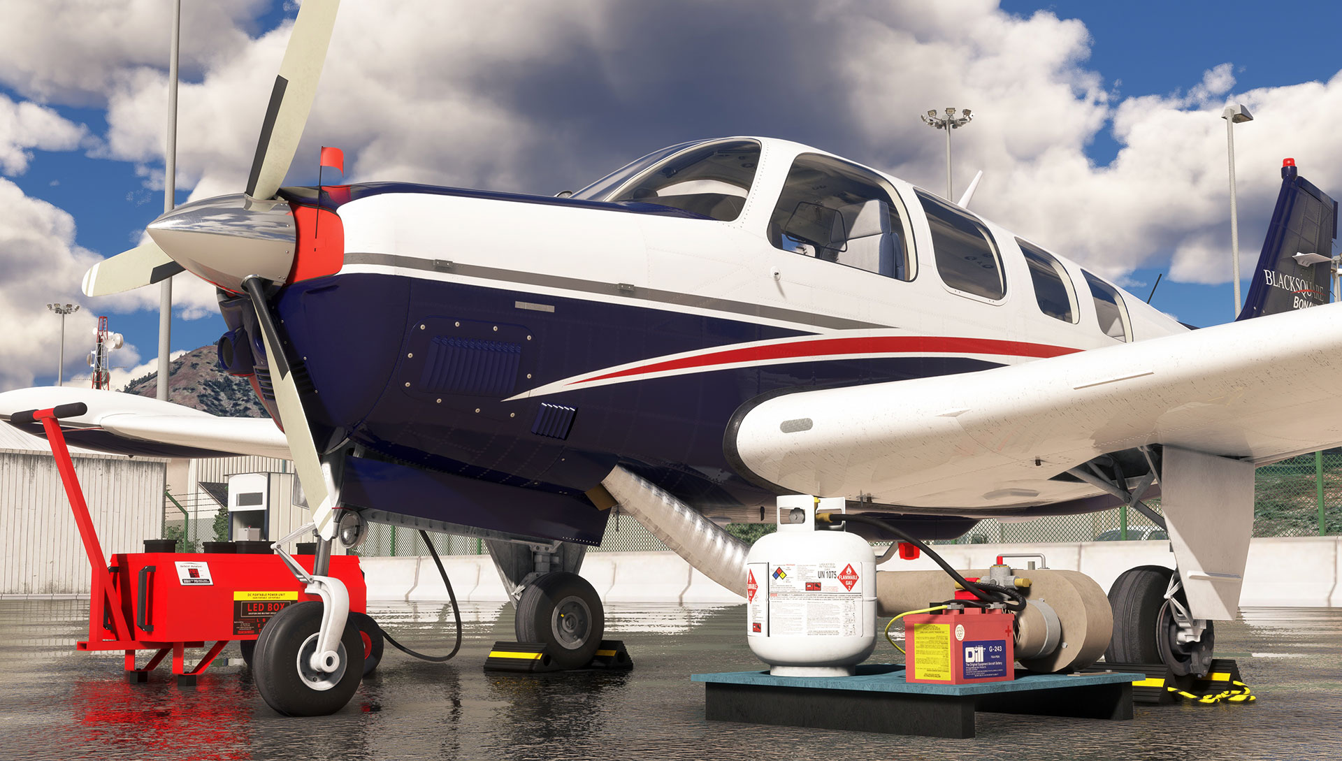 The Bonanza Professional features a flight model with performance to match the real-world aircraft based on real Bonanza owner feedback and in-flight data. Engine and aerodynamic performance should be within 2% of POH values, though no two engines are ever the same. The flight model uses the most up to date features available in MSFS 2020 and MSFS 2024, such as the new voxel CFD aerodynamics, CFD propeller, adverse yaw and stall parameters, and flexible tyre physics. Engine damage and fouling produce a rough running engine and decreased performance.