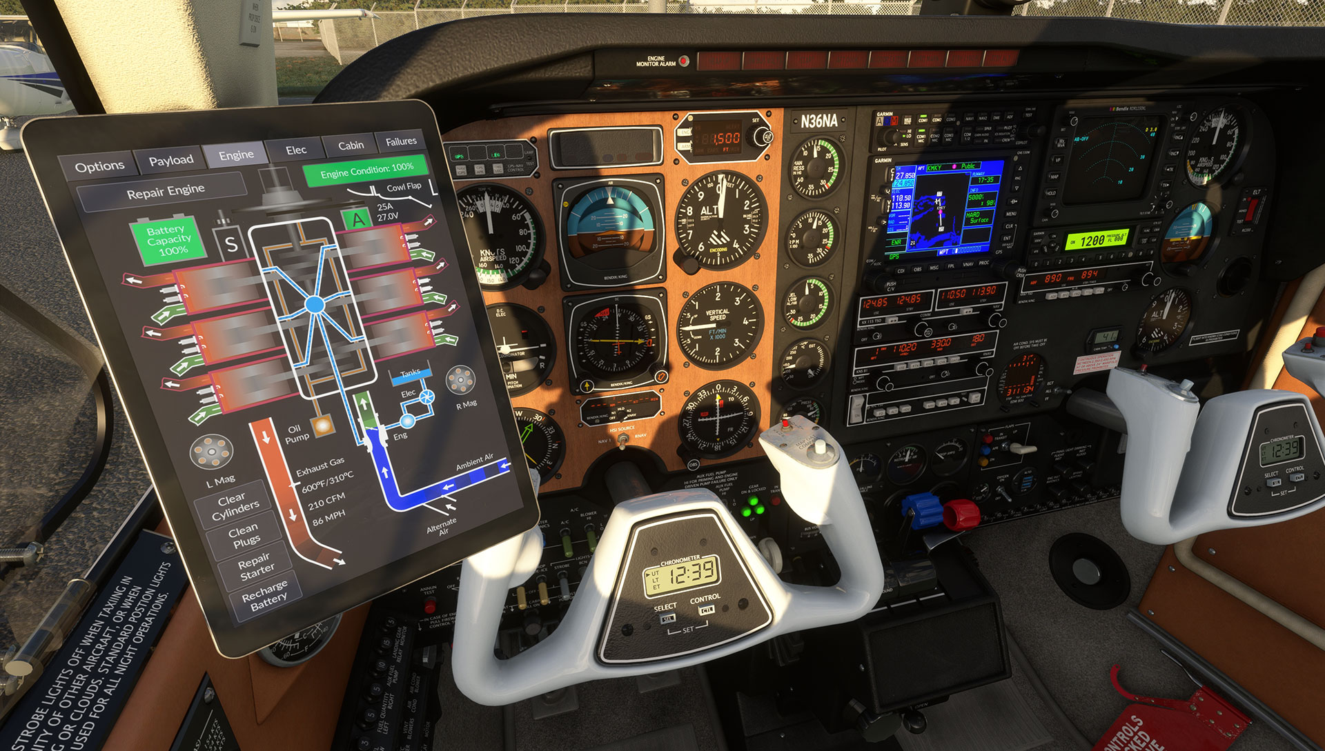 - IMPROVED 110+ Random, scheduled, or performance-triggered failures, settable via the tablet, including engine damage, compatible with third party UIs and instructor stations.