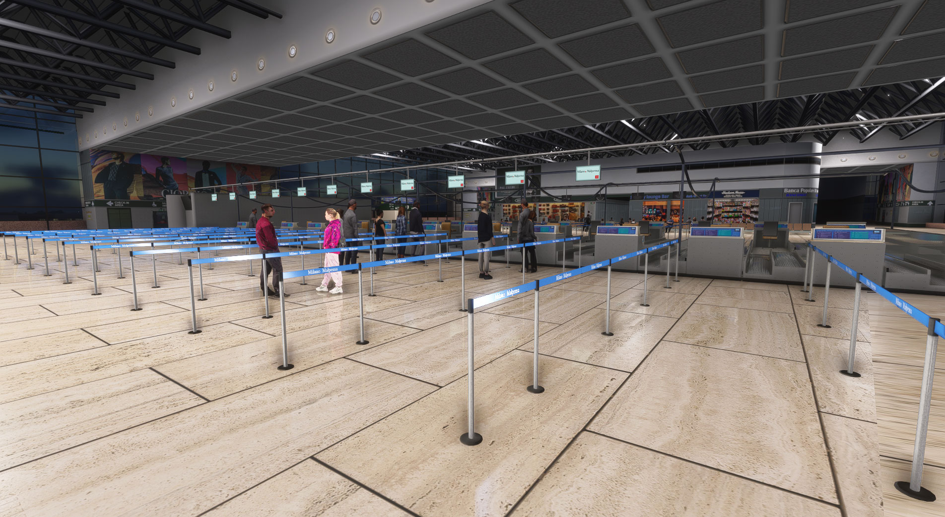 - Add passengers inside Terminal 1 and in the public area of Terminal 2