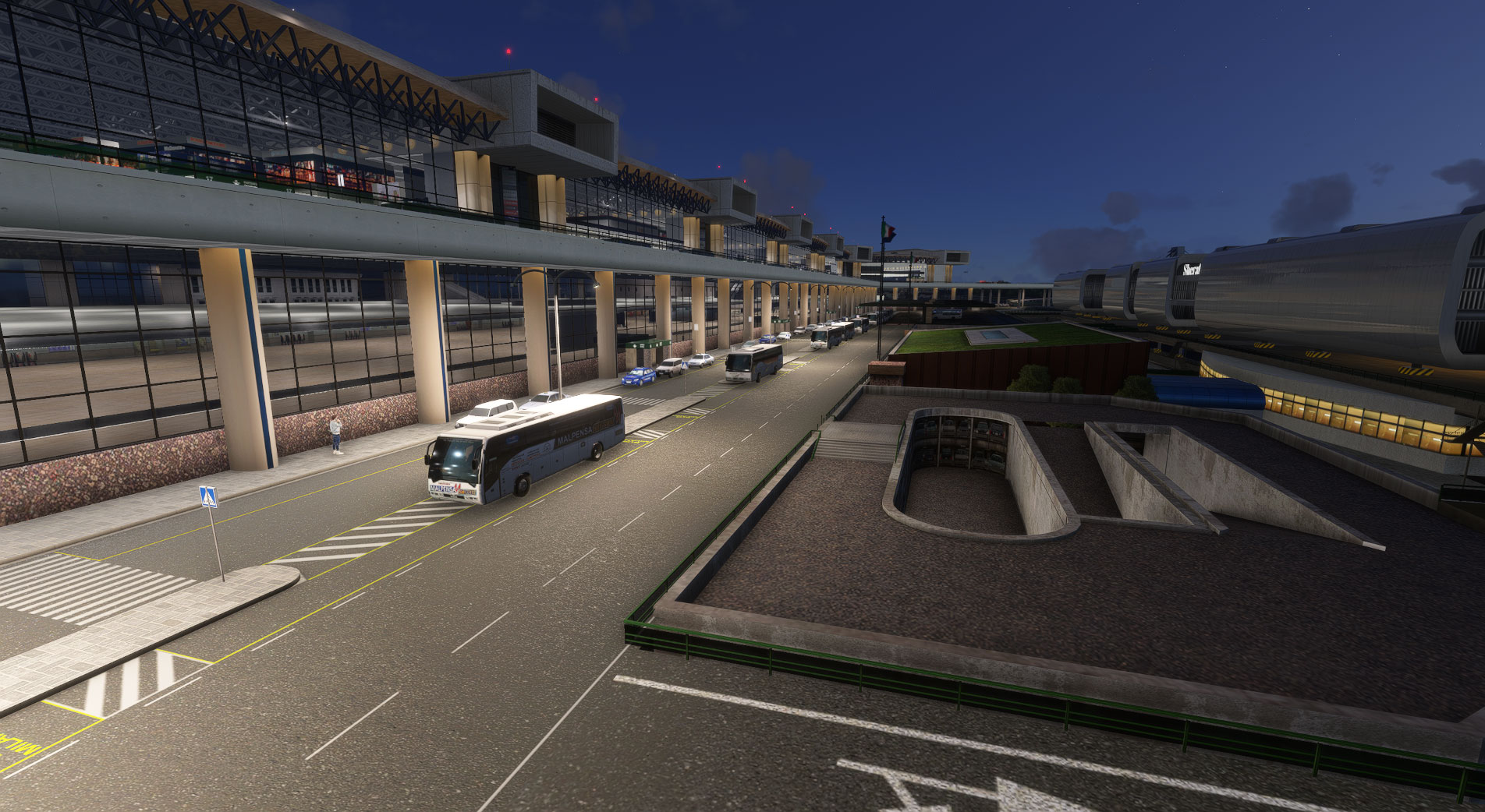 - Dynamic environment with custom apron vehicle traffic and terminal train animations