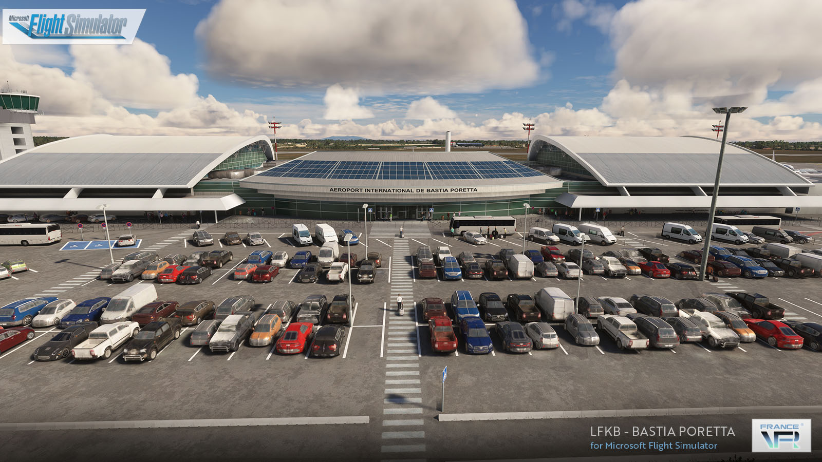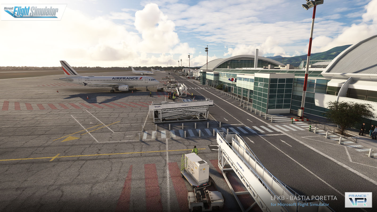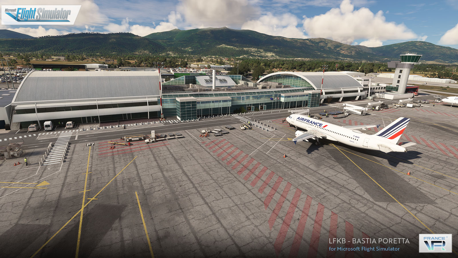 LFKB – Bastia Poretta est un complément scénique pour Microsoft Flight Simulator issu du pack Airport France Pack 5 (Corsica Airports) qui modélise l'aéroport de Bastia Poretta de façon extrêmement détaillée, incluant les bâtiments de l'aéroport, les textures et marquages sol ainsi que ses éclairages nocturnes et de nombreux objets sur la plateforme.