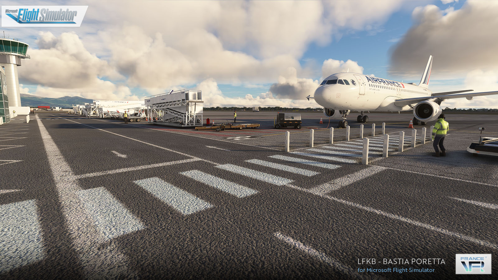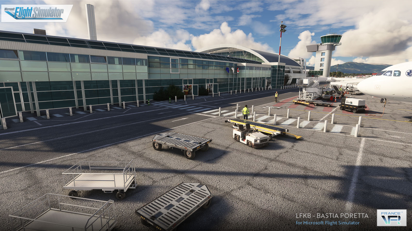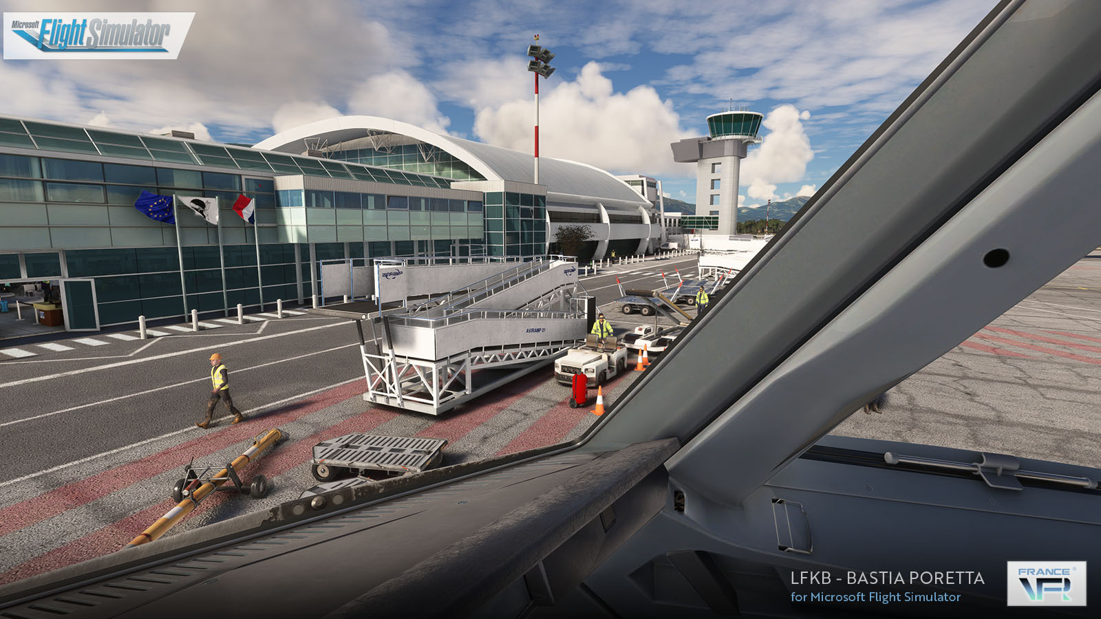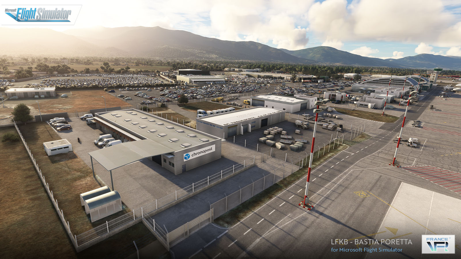 LFKB – Bastia Poretta est un complément scénique pour Microsoft Flight Simulator issu du pack Airport France Pack 5 (Corsica Airports) qui modélise l'aéroport de Bastia Poretta de façon extrêmement détaillée, incluant les bâtiments de l'aéroport, les textures et marquages sol ainsi que ses éclairages nocturnes et de nombreux objets sur la plateforme.