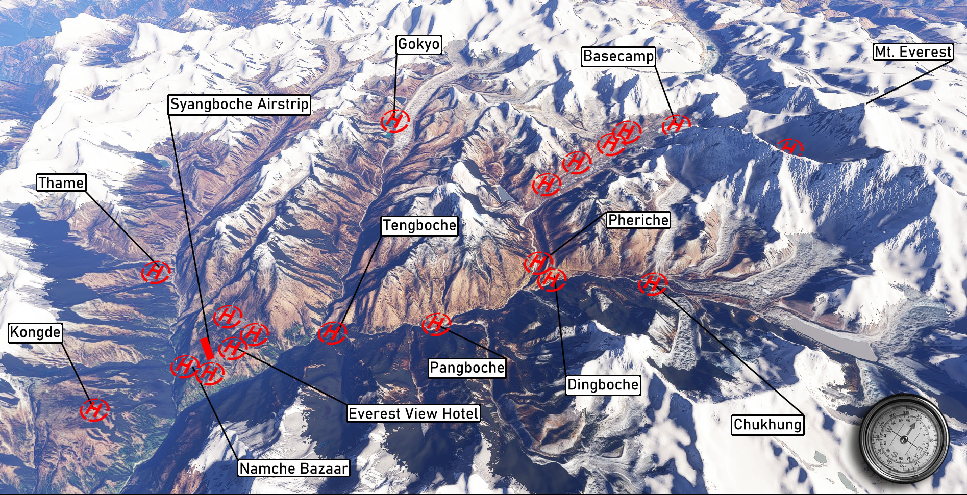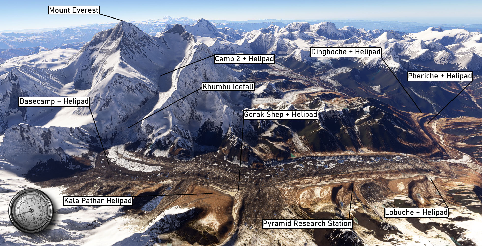 - Mt. Everest basecamp with extremely high resolution data for Khumbu Glacier including the Khumbu Ice Falls – perfect for even the most adventurous helicopter pilots!