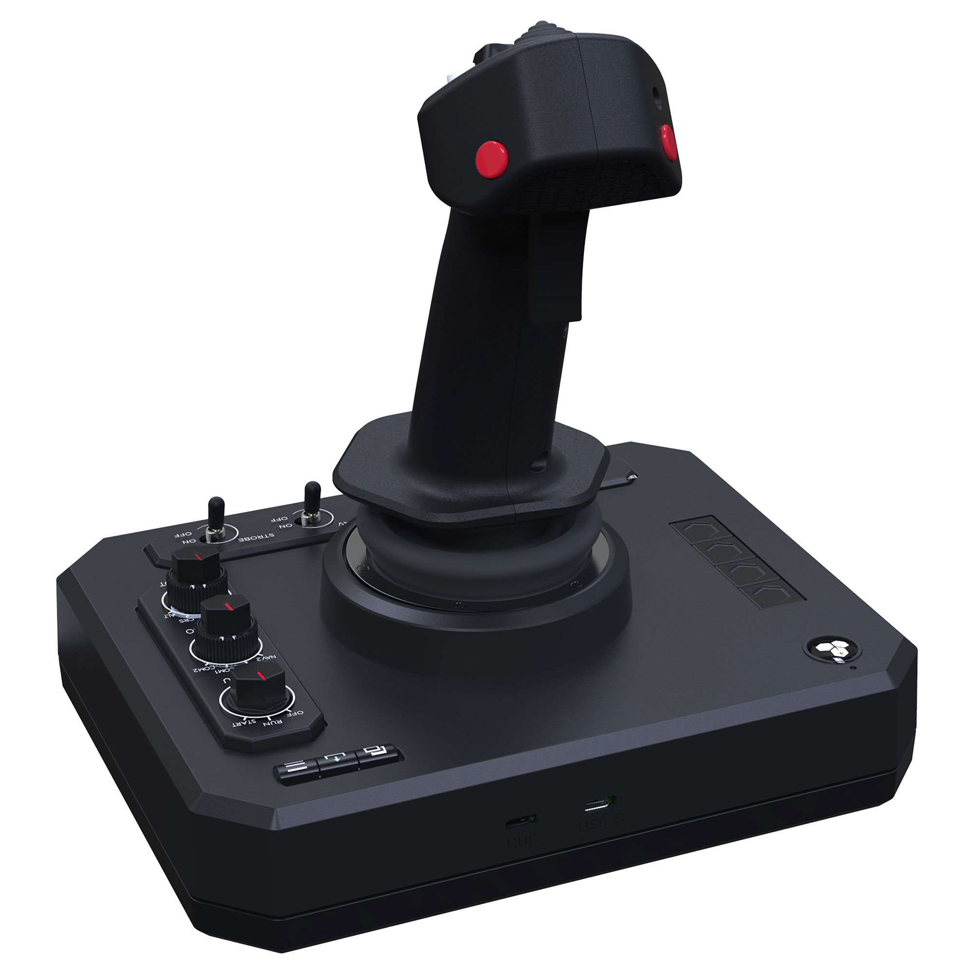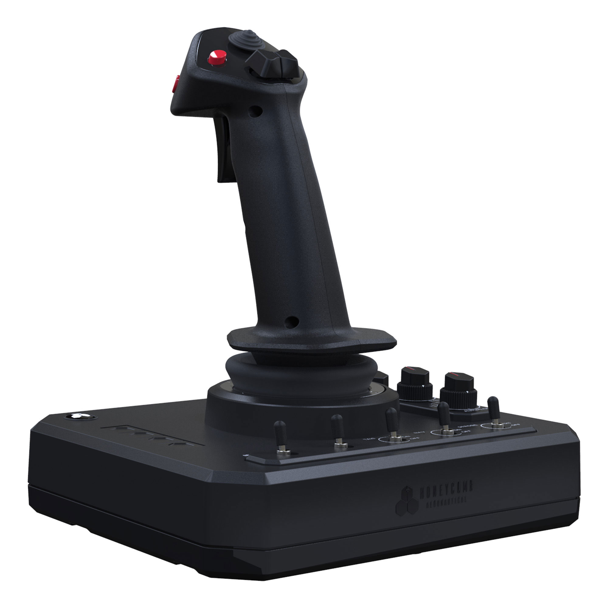 - Ambidextrous joystick with POV, trigger, rockers, and buttons