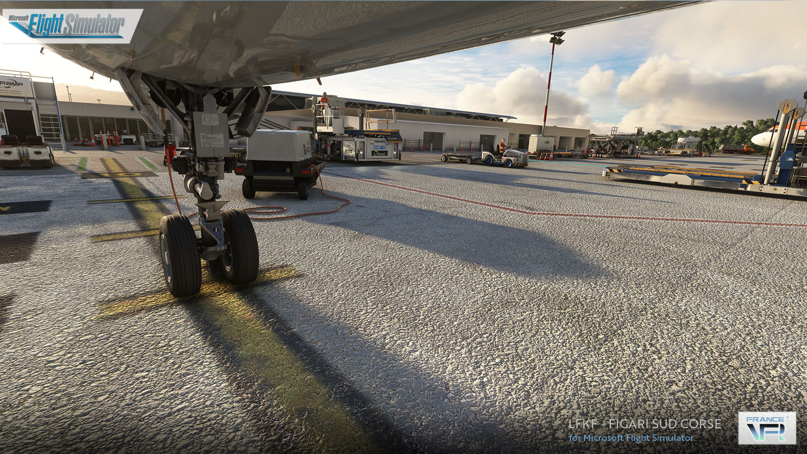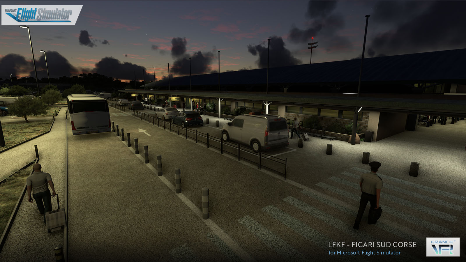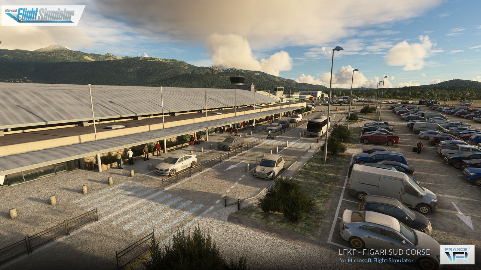 LFKF is an airport add-on for Microsoft Flight Simulator from the Airport France Pack 5 which models Figari Sud Corse airport in extremely detailed fashion, including airport buildings, textures and ground markings as well as its night lights and many objects on the platform.