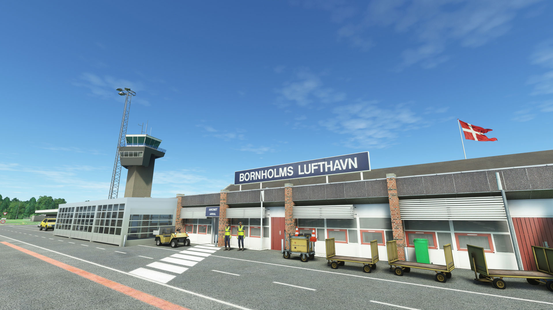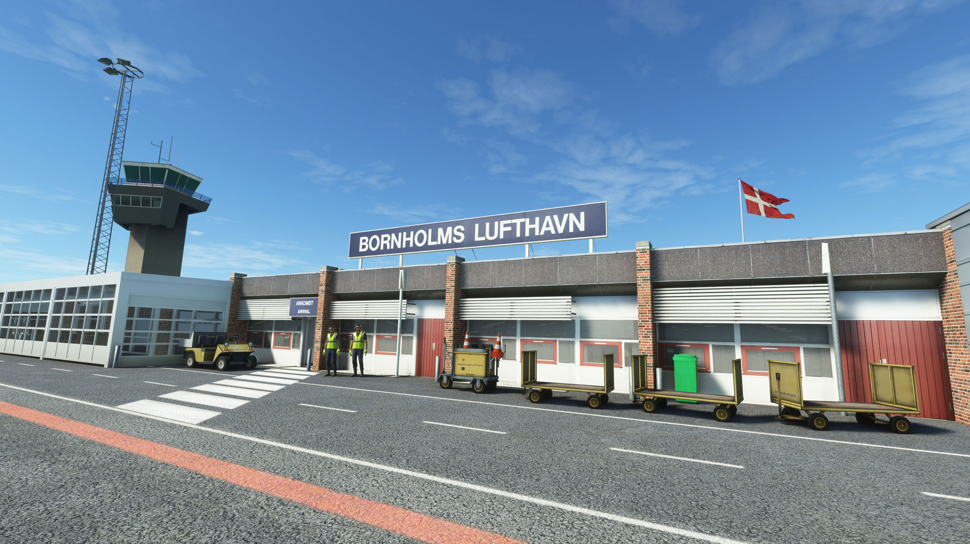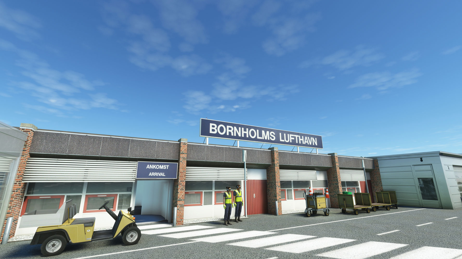 EKRN Bornholm Airport is a highly detailed and accurate rendition of Bornholm Airport (EKRN, RNN), situated on the Danish Baltic Sea island of Bornholm. EKRN Bornholm Airport features textures made from photos taken at the airport by SimNord, custom-made airport vehicles, custom aerial imagery and detailed and accurate models of airport buildings.