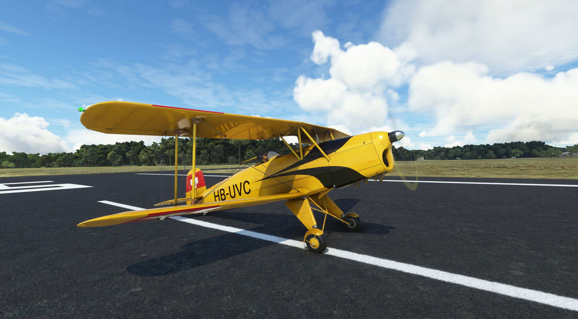 This version of the Bücker Bü-131B by Lionheart Creations is the Swiss model which 99 units were produced in Switzerland. This particular model shows you a modernized version of one that would be typically owned and modified to todays standards, which includes fitting of radios (COM1 and Transponder) and NAV lights for night flying. I have also hidden a bare-bones autopilot in the instrument panel that has basic AP features. A free-to-download owners manual of this plane is available to show you in more detail how everything works.