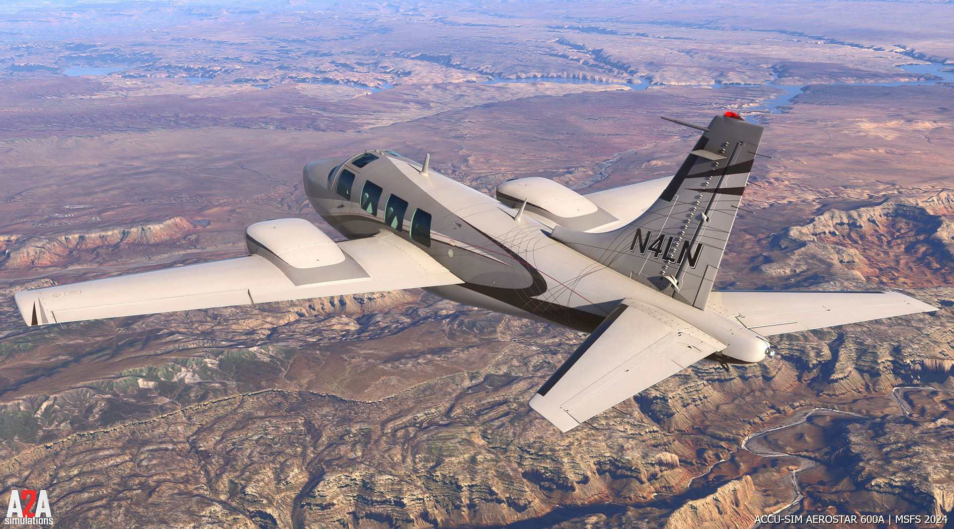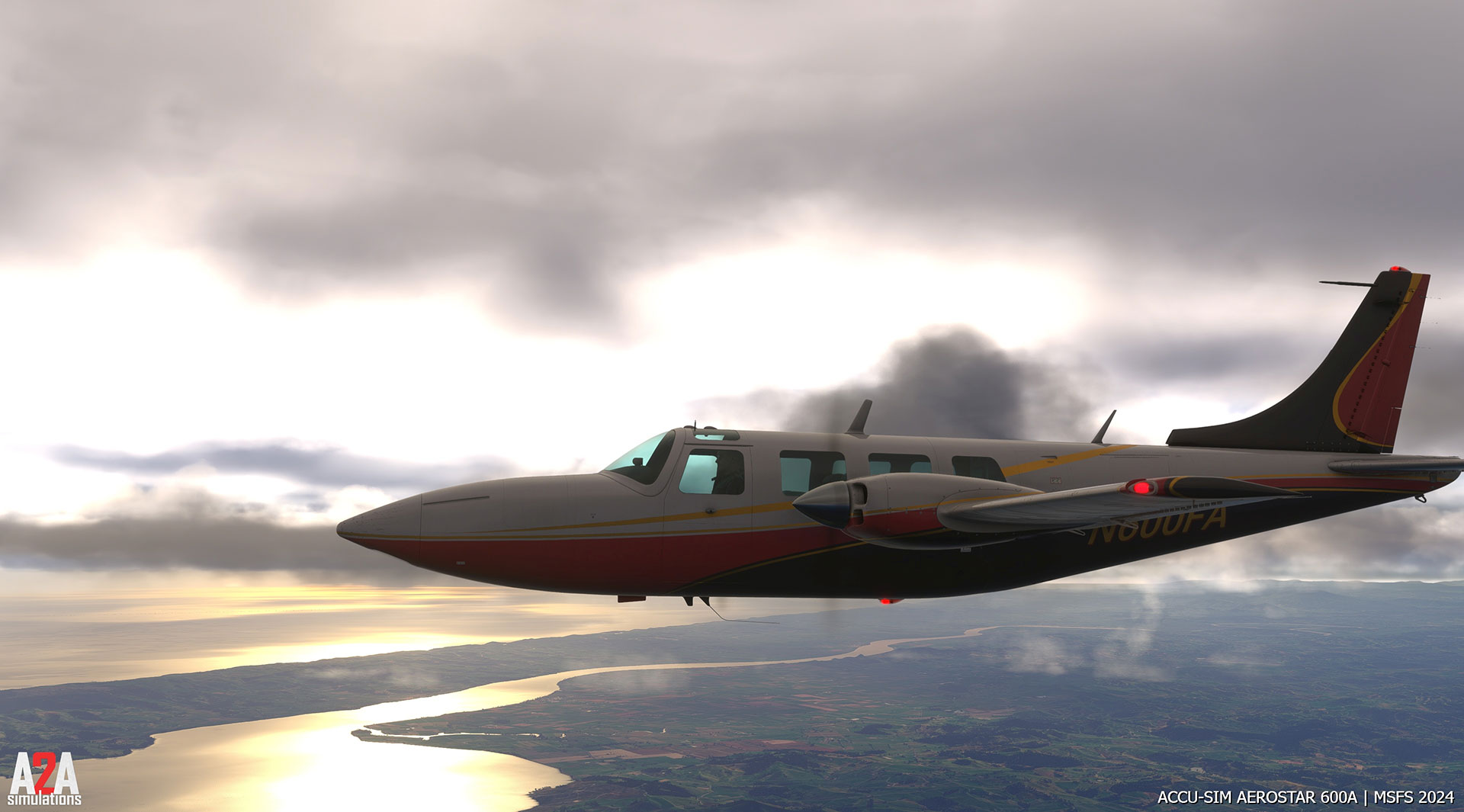 "After years of refining Accu-Sim technology, A2A Simulations proudly presents the Aerostar 600, powered by our all-new Accu-Sim 2.0. Built from the ground up, this technology redefines flight simulation with a physics-based approach to aerodynamics, engine modeling, and aircraft systems. The Aerostar 600, a high performance twin-engine aircraft, was chosen as our flagship for Accu-Sim 2.0 due to its unique blend of speed, reliability, and handling, making it an ideal platform to showcase our advancements.