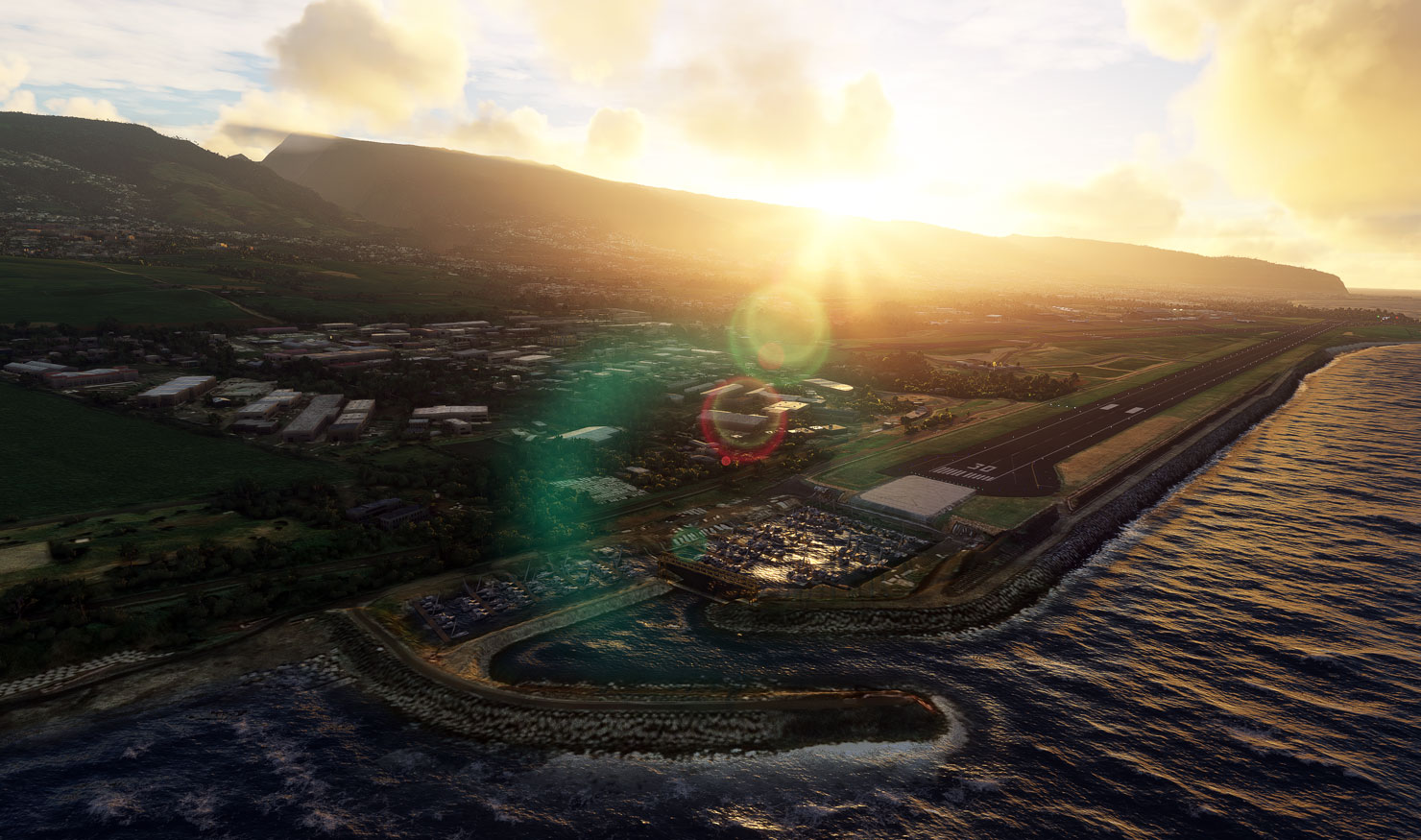 Roland Garros International Airport (FMEE) serves the French island of Réunion in the Indian Ocean, located between Madagascar and Mauritius. The airport sits directly on the northern coastline, with mountainous terrain rising steeply just inland, making approaches both scenic and demanding.