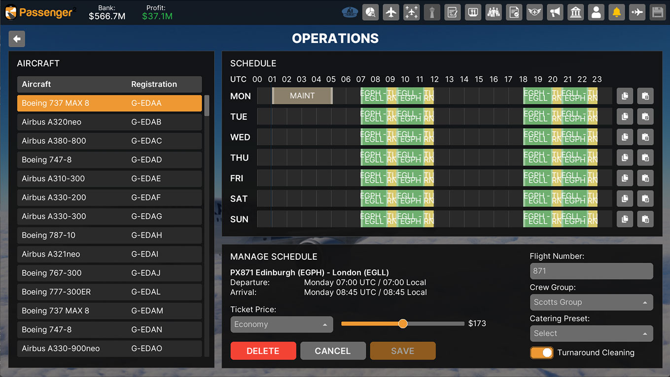 Load & Go lets you skip the setup and jump straight into flying. No routes, no management, the system handles everything for you including service choices. Great for casual sessions, quick flights, or players who want to focus on flying rather airline management.