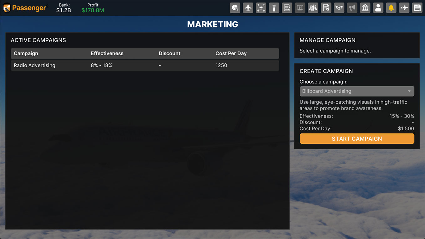 Advanced Mode gives you complete access to every system – route planning, service customization, loyalty programs, fleet assignments, and passenger feedback. You’ll manage fuel costs, delays, moods, and reputation in real time. Perfect for players who want deep strategy, operational realism, and total ownership of their airline.